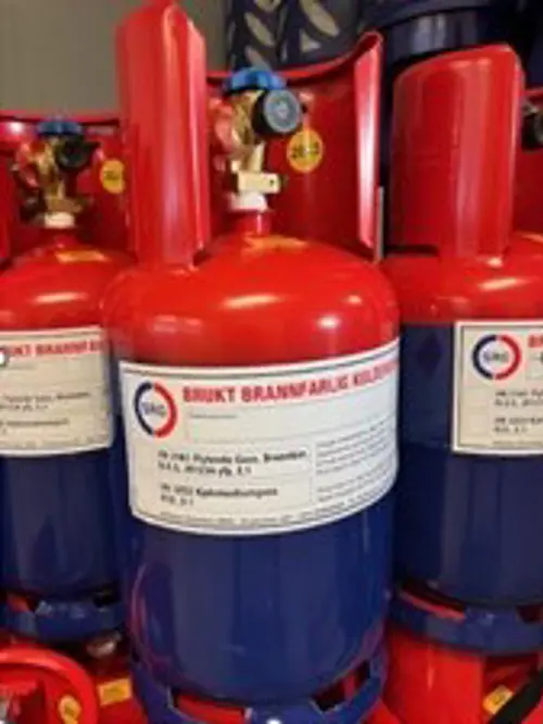 HFK, PFK, HKFK (ikke R22), KFK, HK NB. Ren hydrokarbon (R290/600) må sendes til avd. Bjørkelangen |