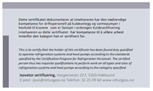 F-gass sertifisering kuldeanlegg & varmepumper, og AC anlegg i bil